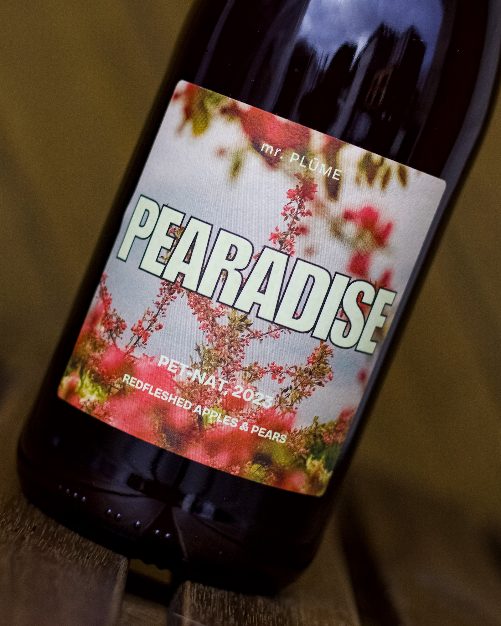 - Co-fermentação de maçãs‑crab vermelho‑escarlate com peras locais (tipo Nashi e selvagens), utilizando fermentação selvagem (“wild fermentation”) e segunda fermentação natural em garrafa (método pétillant-naturel).
